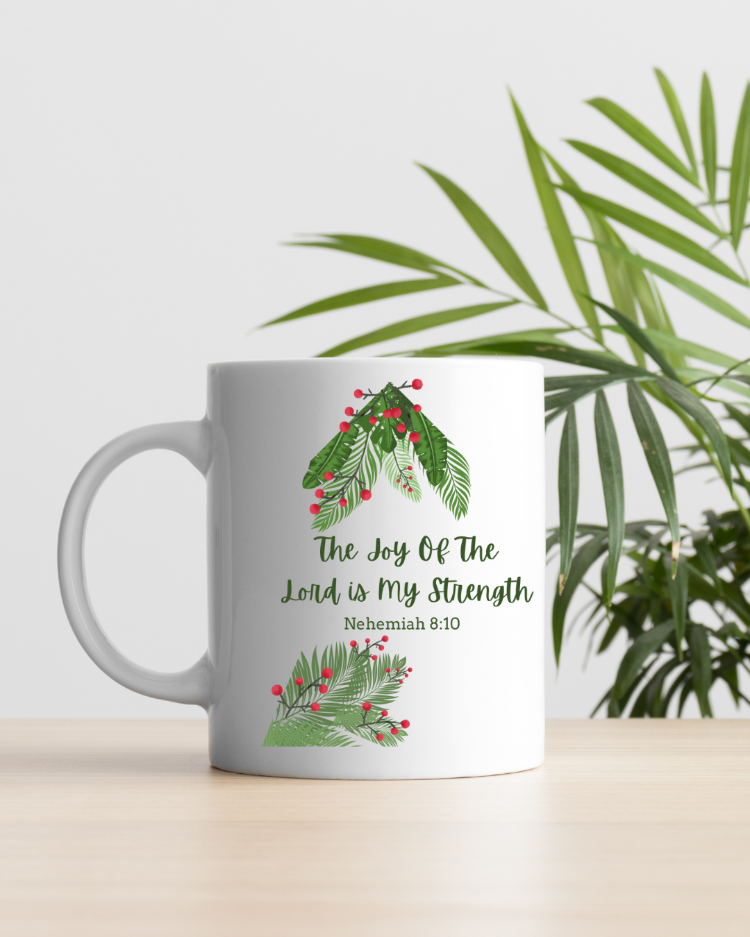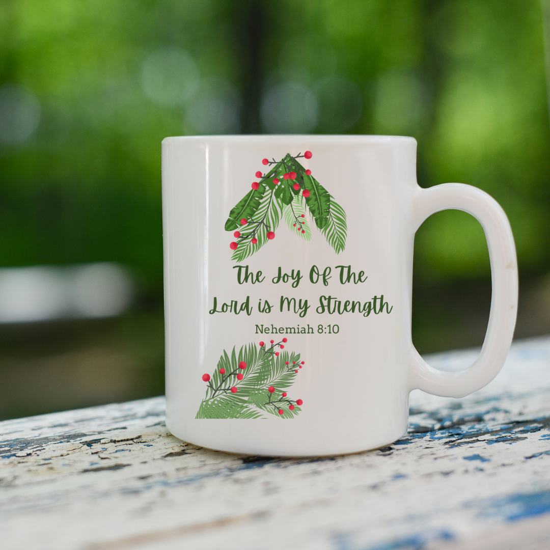 Elevate your morning routine with this enchanting mug that radiates joy and warmth. Crafted from durable white ceramic, its charming design features the uplifting quote, “The Joy Of The Lord is my Strength” beautifully adorned with lush greenery. This mug is not just about function; it adds a touch of inspiration to your daily coffee or tea ritual, making every sip an uplifting experience. Perfect for anyone who cherishes their moments of reflection, especially during the holiday season, family gatherings, or quiet evenings at home. A thoughtful gift for friends and loved ones who appreciate faith-based reminders in their day-to-day life. Celebrate special occasions like Christmas, birthdays, or even just a self-care day with this meaningful addition to your kitchen or office. Embrace the cozy vibe it brings, making it a staple for every home.